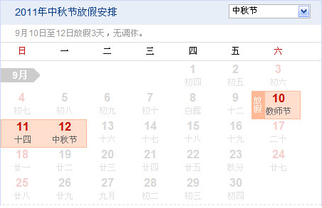 2011年中秋節(jié)放假通知