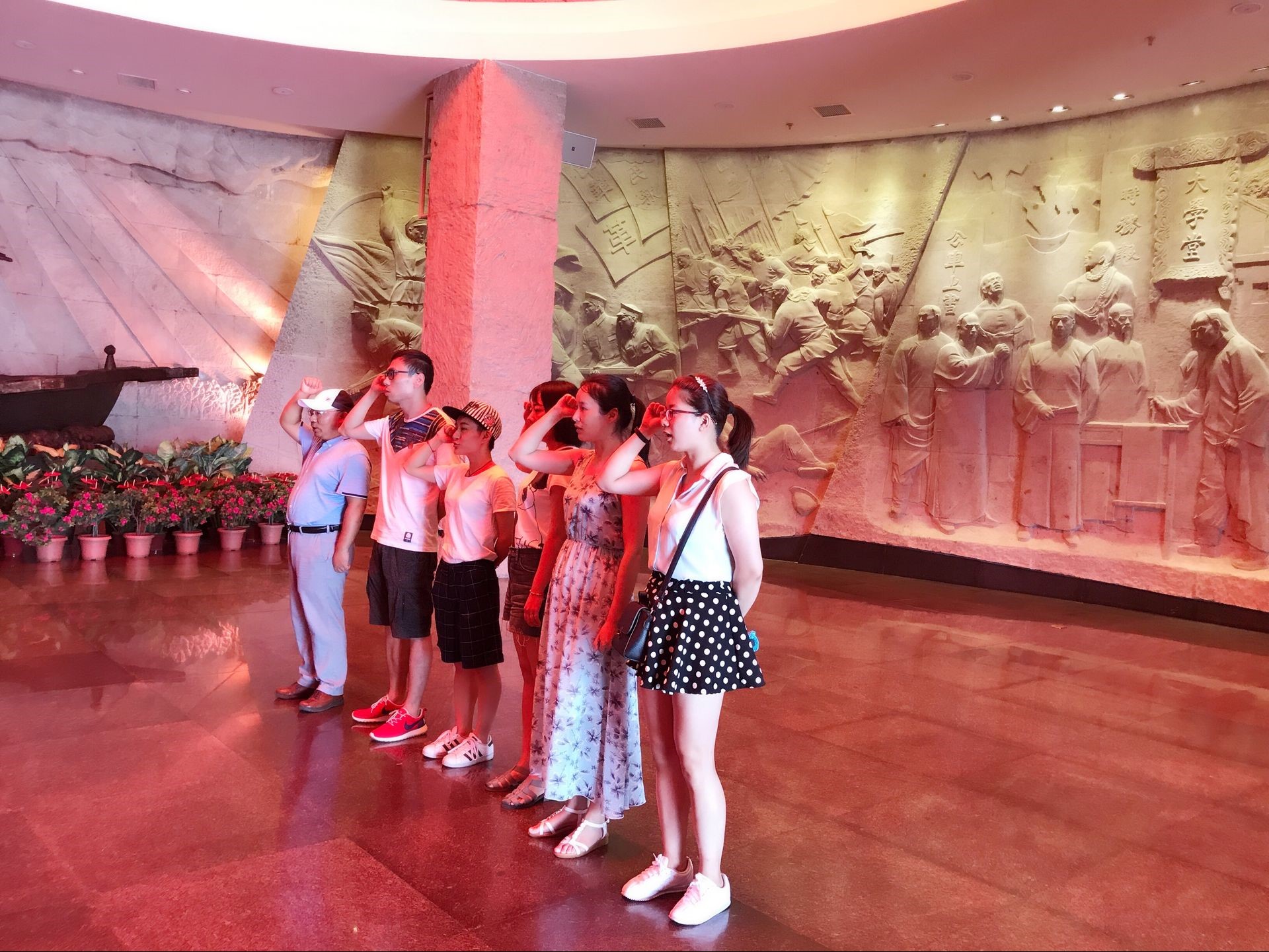 南湖革命紀(jì)念館內(nèi)含兩個(gè)單元,“開(kāi)天辟地”和“光輝歷程”,包括“探索救亡圖存的道路”、“中國(guó)共產(chǎn)黨成立”、“十三位代表生平事跡介紹”三個(gè)部分以及“進(jìn)行新民主主義革命”、“建設(shè)社會(huì)主義新中國(guó)”、"走中國(guó)特色社會(huì)主義道路"三個(gè)部分。黨團(tuán)員們通過(guò)光電影像、圖片、實(shí)物等珍貴資料,睹物思人品史,大家眼前仿佛展開(kāi)了一幅中國(guó)共產(chǎn)黨90多年戰(zhàn)斗歷程的生動(dòng)歷史畫(huà)卷。一代又一代的中國(guó)共產(chǎn)黨人,在中華民族最緊迫的時(shí)候,為爭(zhēng)取民族解放、國(guó)家獨(dú)立而艱辛奮斗,為取得民族復(fù)興、國(guó)家富強(qiáng)而不懈進(jìn)取。南湖紅船、虎門銷煙、嘉興火車站等復(fù)原場(chǎng)景,打開(kāi)了在場(chǎng)黨團(tuán)員們思念的匣子,戰(zhàn)士的草鞋、手寫的家信無(wú)聲勝有聲地訴說(shuō)著那段篳路藍(lán)縷的烽火歲月,使大家的心靈得到了洗禮,思想得到了升華。
