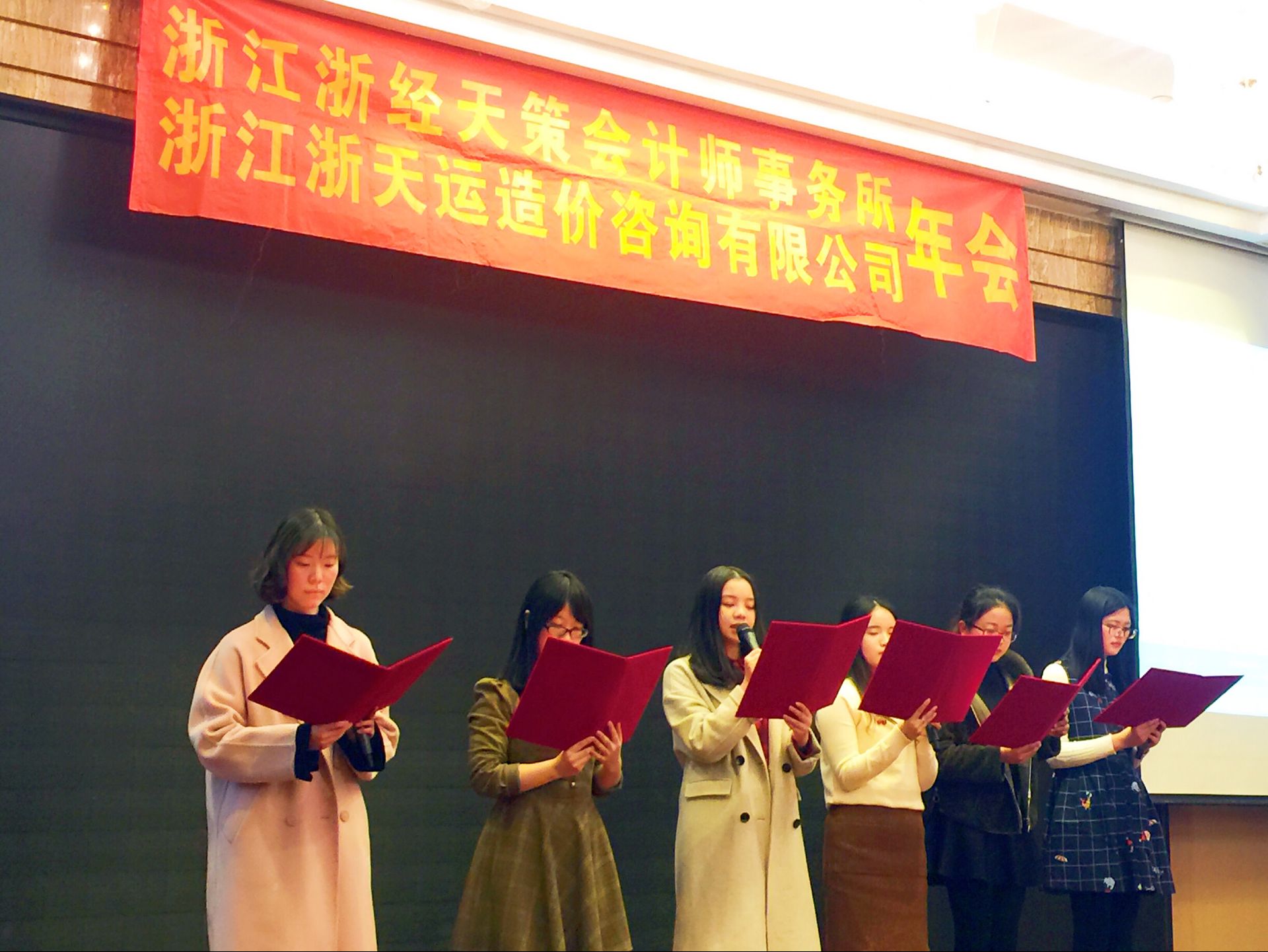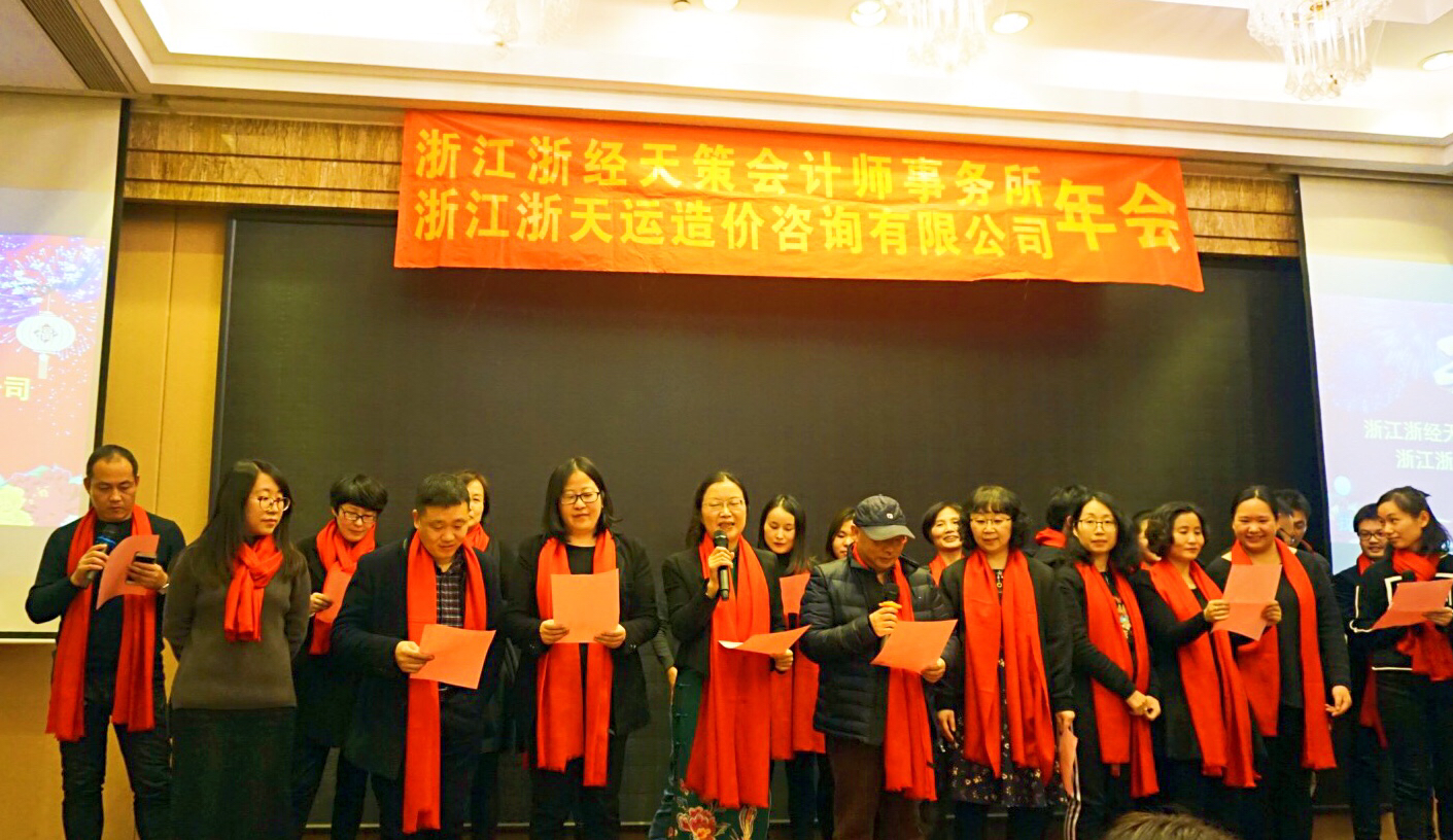 2018年2月7日,由浙經(jīng)天策會(huì)計(jì)師事務(wù)所有限公司、浙江浙天運(yùn)造價(jià)咨詢(xún)有限公司主辦的“不忘初心,砥礪前行”2018迎新晚會(huì)在中山國(guó)際大酒店隆重舉行,浙經(jīng)天策機(jī)構(gòu)全體員工歡聚一堂,共度聯(lián)歡,回顧2017年的業(yè)績(jī),展望2018年的光輝前程。