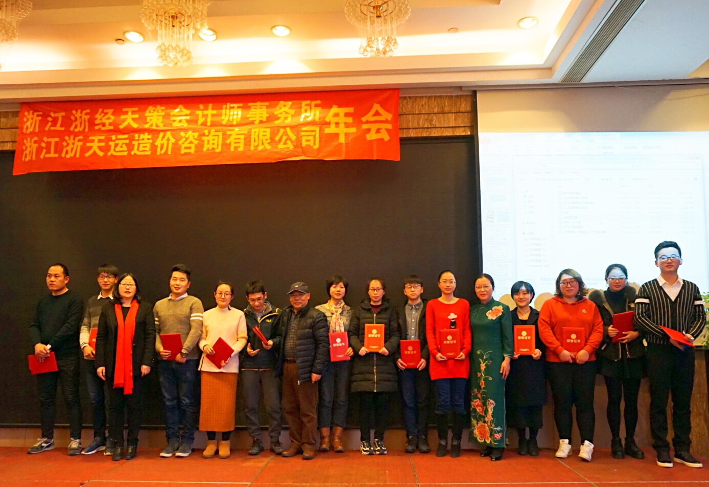 會(huì)上,對(duì)2017年度公司優(yōu)秀員工、優(yōu)秀黨員、最佳員工以及2015-2016年度浙江省優(yōu)秀資產(chǎn)評(píng)估師、浙江省注冊(cè)會(huì)計(jì)師資產(chǎn)評(píng)估師行業(yè)2015-2016年度“百名青年人才”榮譽(yù)稱(chēng)號(hào)、浙江省注冊(cè)會(huì)計(jì)師資產(chǎn)評(píng)估行業(yè)2015-2016年度“十大青年才俊”榮譽(yù)稱(chēng)號(hào)獲得者進(jìn)行了表彰,榜樣的力量是無(wú)窮,必將激勵(lì)起更多員工的工作激情,使浙經(jīng)天策機(jī)構(gòu)變得更大更強(qiáng)。為感謝公司一直以來(lái)對(duì)公益事業(yè)的支持,杭州市上城區(qū)愛(ài)馨互助會(huì)給浙江浙經(jīng)天策會(huì)計(jì)師事務(wù)所有限公司黨支部、浙江浙天運(yùn)造價(jià)咨詢(xún)有限公司送來(lái)了感恩狀。