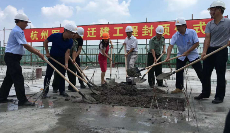 我公司總經(jīng)理褚梅云帶隊(duì)參加杭州軍供站拆遷工程封頂儀式