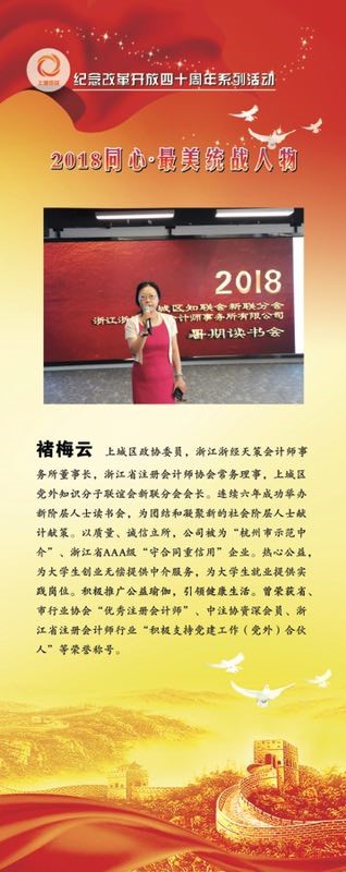 我公司董事長褚梅云榮獲2018年上城區(qū)統(tǒng)一戰(zhàn)線“同心·最美統(tǒng)戰(zhàn)人物