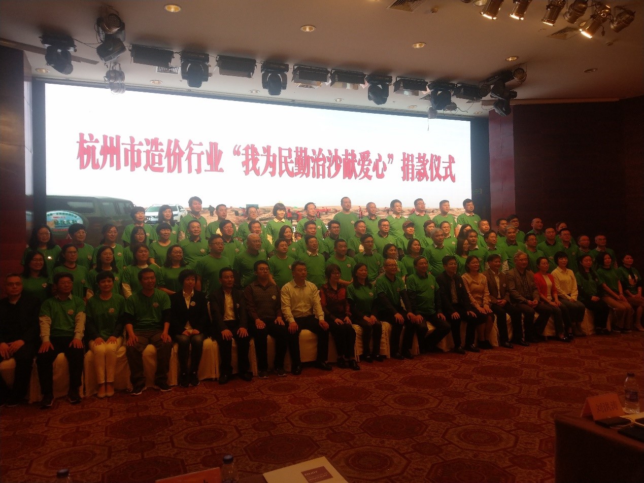 為了踐行“兩山”理論,樹立綠色創(chuàng)新發(fā)展理念,杭州市建設(shè)工程造價和投資管理辦公室黨支部與協(xié)會黨委于2018年、2019年連續(xù)發(fā)起了“種一顆梭梭樹,綠一方凈土”、“造價行業(yè)再行動,我為治沙作奉獻”為民勤縣治沙造林的倡議。4月17日,杭州市建設(shè)工程造價行業(yè)“我為民勤治沙獻愛心”捐款儀式,相關(guān)領(lǐng)導(dǎo)和捐贈單位出席了儀式,我公司總經(jīng)理褚梅云參加了本次捐贈活動,并代表公司捐款,助力民勤治沙,共建綠色家園。