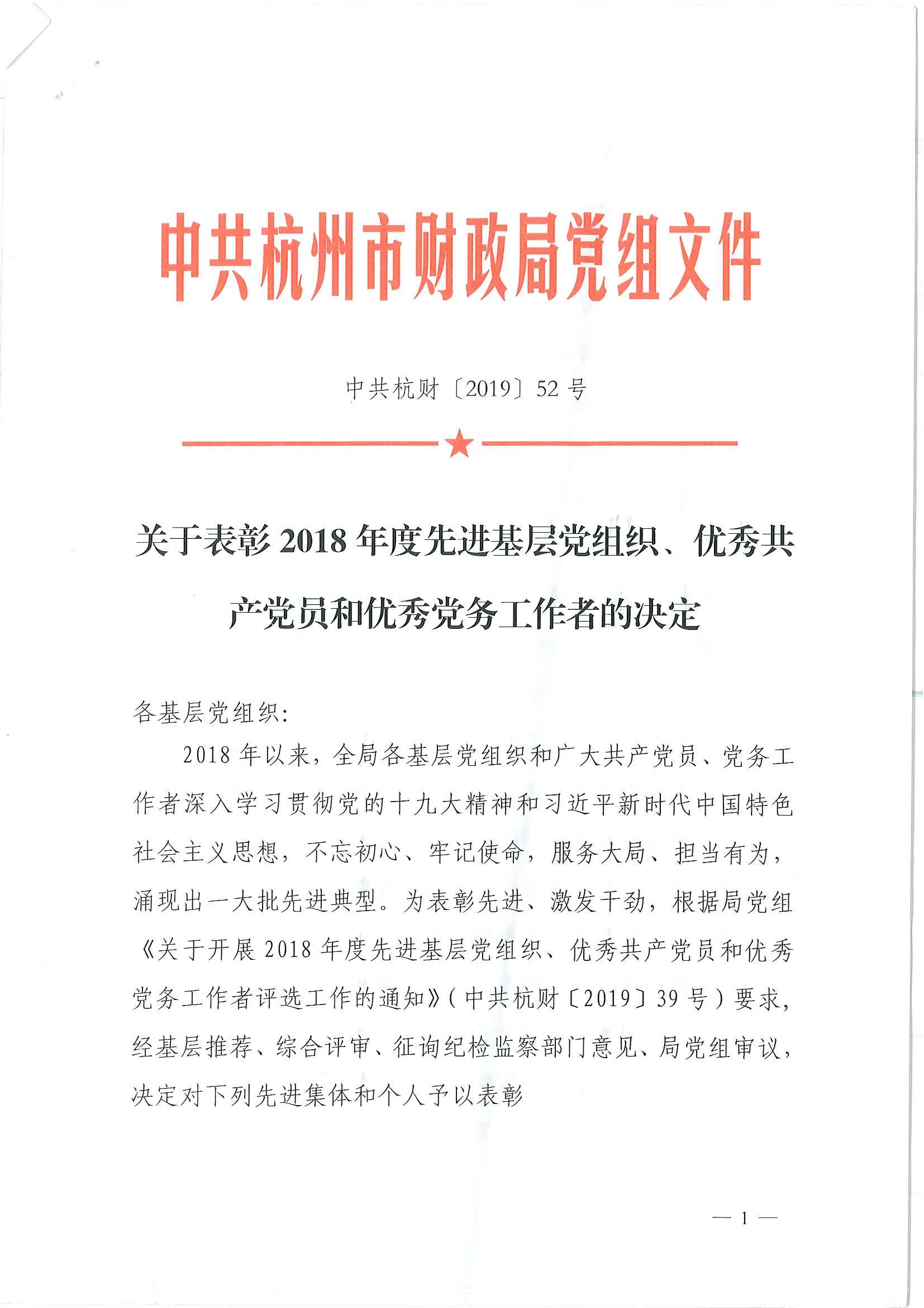 祝賀浙江浙經(jīng)天策會計師事務(wù)所黨支部被杭州市財政局黨組評為“2018年度先進基層黨組織”