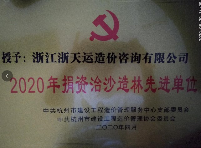 “綠色傳遞,共建生態(tài)文明”——浙天運(yùn)造價(jià)榮獲“2020年捐資治沙造價(jià)先進(jìn)單位”榮譽(yù)稱號(hào)