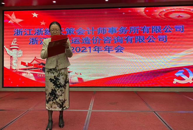 年會開始,浙江天策機構(gòu)董事長褚梅云向全體員工、員工家屬和一直支持我們的各級政府、協(xié)會領(lǐng)導、新老朋友們,致以節(jié)日的問候、祝福和感謝,并作了“乘風破浪、揚帆遠航”年會報告,與大家一起回顧這一年里企業(yè)和員工所取得的各項成就和榮譽,對公司在2020年涌現(xiàn)出的先進個人及獲得的省級、市級榮譽給予了鼓勵與肯定,帶領(lǐng)大家重新認識了浙經(jīng)天策,并為在疫情防控期間,員工群策群力,認真落實防疫措施,爭分奪秒復工復產(chǎn),充分展現(xiàn)的積極向上的企業(yè)精神點贊。展望未來,褚董對新的一年的工作方向做了明確指引,她指出,2021年,我們務必抓住新的機遇,開拓創(chuàng)新,迎接新的挑戰(zhàn),“奮進新時代,揚帆再起航”,不忘初心,牢記使命,不斷提升專業(yè)勝任能力和職業(yè)化水平,為助推構(gòu)建新發(fā)展格局、助推國家經(jīng)濟高質(zhì)量發(fā)展貢獻專業(yè)力量!