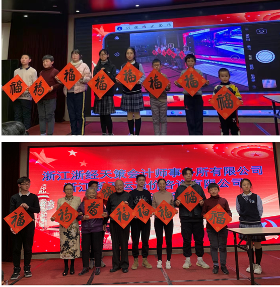員工家屬“小書法家”楊舒貽為我們現(xiàn)場送“福”字,小手握毛筆,捋平筆尖,蘸上墨水,熟練地運筆、頓筆,其書寫一氣呵成,妙筆生輝!一個個“福”字在紅紙上慢慢成形,發(fā)楊和傳承中國的傳統(tǒng)文化!小伙伴及六合金牛領(lǐng)了書法作品,把年味、喜氣和小朋友最真摯的祝愿帶回家。