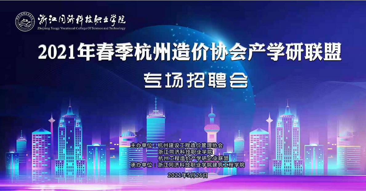 為更好地搭建學(xué)校畢業(yè)生與用人單位之間的橋梁,幫助畢業(yè)生順利就業(yè),5月26日下午,由杭州市建設(shè)工程造價管理協(xié)會、浙江同濟(jì)科技職業(yè)學(xué)院、杭州市產(chǎn)學(xué)研企業(yè)聯(lián)盟主辦,浙江同濟(jì)科技職業(yè)學(xué)院建筑工程學(xué)院承辦的杭州造價協(xié)會產(chǎn)學(xué)研聯(lián)盟專場招聘會在同濟(jì)學(xué)院建筑工程學(xué)院舉行。協(xié)會黨委委員(兼副會長)朱利康、黨委委員(兼副秘書長)羅錦祥、副會長賀斌、副秘書長程建勇以及建筑工程學(xué)院楊院長、蔣書記參加。