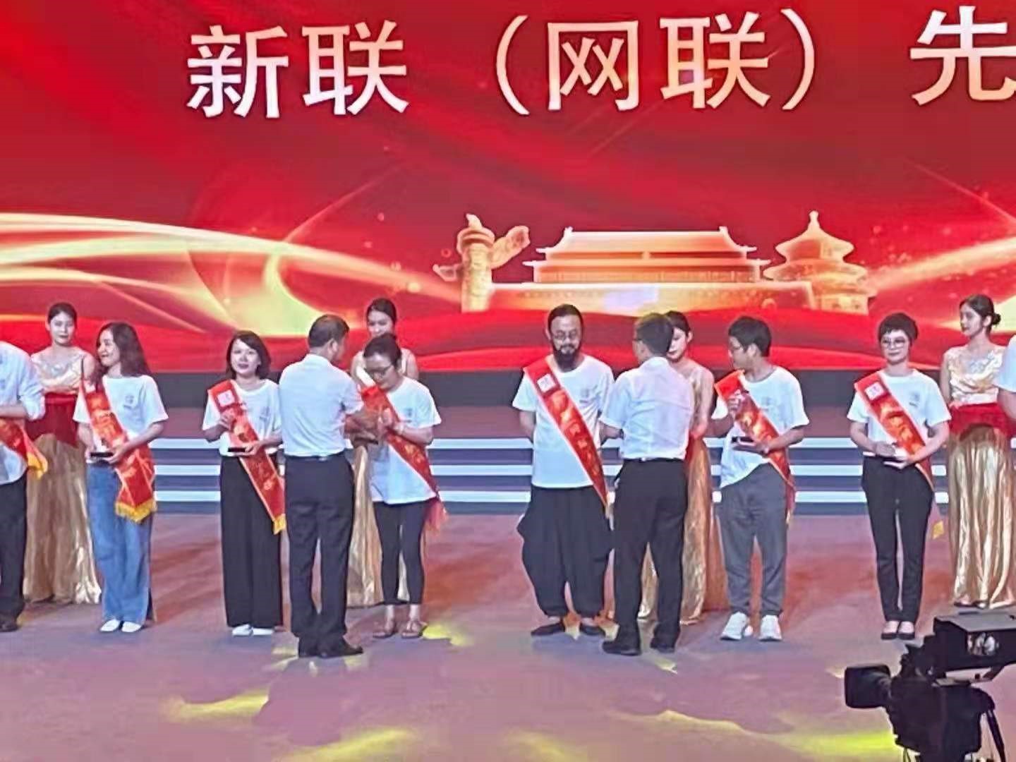 演出期間舉行先進(jìn)表彰儀式。相關(guān)領(lǐng)導(dǎo)登臺(tái)并為3家區(qū)、縣(市)優(yōu)秀新聯(lián)會(huì)團(tuán)體、22名抗疫先鋒和22名新聯(lián)(網(wǎng)聯(lián))先鋒頒獎(jiǎng)。我公司董事長(zhǎng)褚梅云榮獲“杭州市新聯(lián)(網(wǎng)聯(lián))先鋒”榮譽(yù)稱號(hào)。