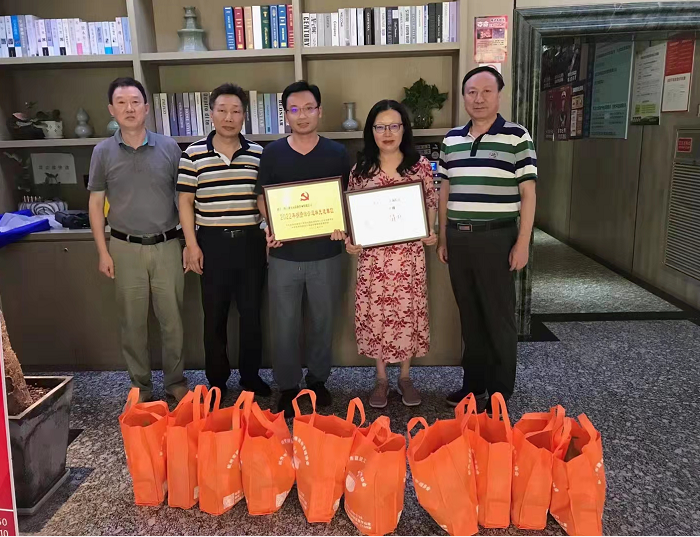 公司副董事長褚梅云對公司的基本概況進行了簡要匯報,并對協(xié)會領(lǐng)導(dǎo)的關(guān)心表示感謝。陸書記一行詳細了解浙天運工作進展情況,叮囑職工要注意勞逸結(jié)合,做好防暑降溫與疫情防控工作,將安全生產(chǎn)落實到行動,保障員工身體健康和生命安全,并將清涼慰問禮包送到職工手上 ,同時為公司頒發(fā)了“2021年度先進會員單位”與“2022年捐資治沙造林先進單位”的榮譽獎牌。