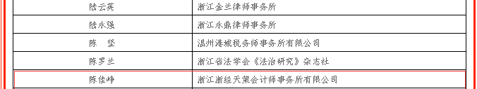 喜訊!浙經(jīng)天策注冊(cè)會(huì)計(jì)師陳佳崢入選浙江省涉案企業(yè)合規(guī)第一批第三方監(jiān)督評(píng)估機(jī)制專業(yè)人員名單